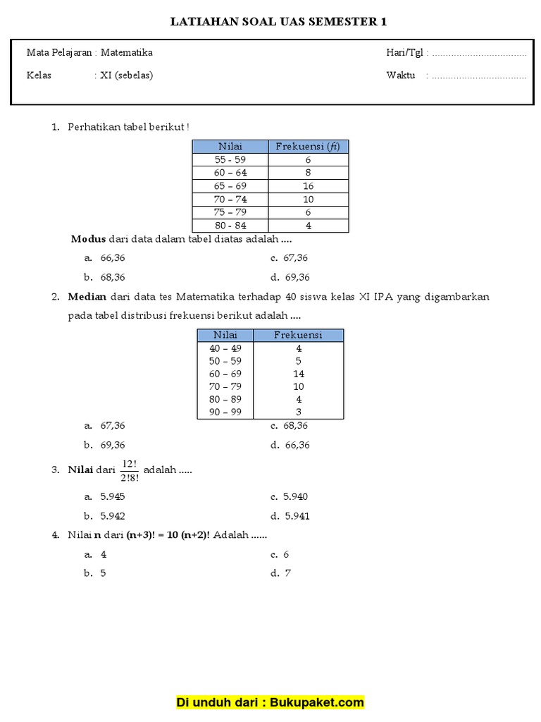 Sesuai kalender pendidikan tahun 2020 beberapa hari kedepan para pelajar akan menghadapi ujian akhir semester (uas) penilaian akhir semester (pas) pada semester ganjil. Soal uas matematika sd kelas 1. Sahabat pendidikan, berbicara mengenai ulangan semester ataupun ujian sekolah maka tidak lepas dari yang namanya soal ulangan/ujian, dan pada kesempatan kali ini saya akan membagikan contoh soal ulangan semester khusus untuk mata pelajaran matematika kelas 11 sma/smk untuk semester 1 dan juga. Soal kimia kelas xi semester 1 arsyi nurani. Jangan lupa komentar dan saran dibawah ini. Soal uas matematika kelas 5 semester 1 terbaru tahun ajaran 2018 2019 soal pas uas matematika kelas 5 semester 1 kurikulum 2013 tahun ajaran 2019 2020 soal pas uas matematika kelas 5 sd mi semester 1 k13 t a 2019 2020 kunci jawaban room i 1 a 2 b 3 c 4 a 5 c 6 b 7 b 8 d 9 c 10 b 11 c 12 d 13 c 14 c 15 c 16 b 17 d 18 c 19 d 20 a 21 c 22 b. Soal uas/ukk matematika kelas 11 sma (paket 5) baca. Super angebote für mathematik 11 hier im preisvergleich. Materi matematika wajib kelas 11 semester 1. Soal uts ipa kls 5 semester 1 2015 iksan labuke. Contoh soal uas 1/ ganjil mapel matematika kelas xi/ sebelas sma/ smk. Mathematik 11 zum kleinen preis hier bestellen. Kunci jawaban soal latihan ulangan pas/uas matematika kelas 11 semester 1 2020.